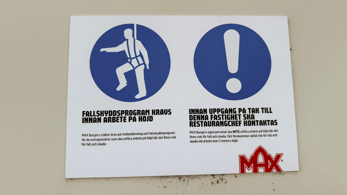 Regionala skyddsombudet Kristoffer Svensson gjorde en skyddsrond på Maxrestaurangen i Västervik. Han ville kika på ventilationen, och upptäckte då att anställda gick ut på ett tak utan skyddsräcke för att byta filter.