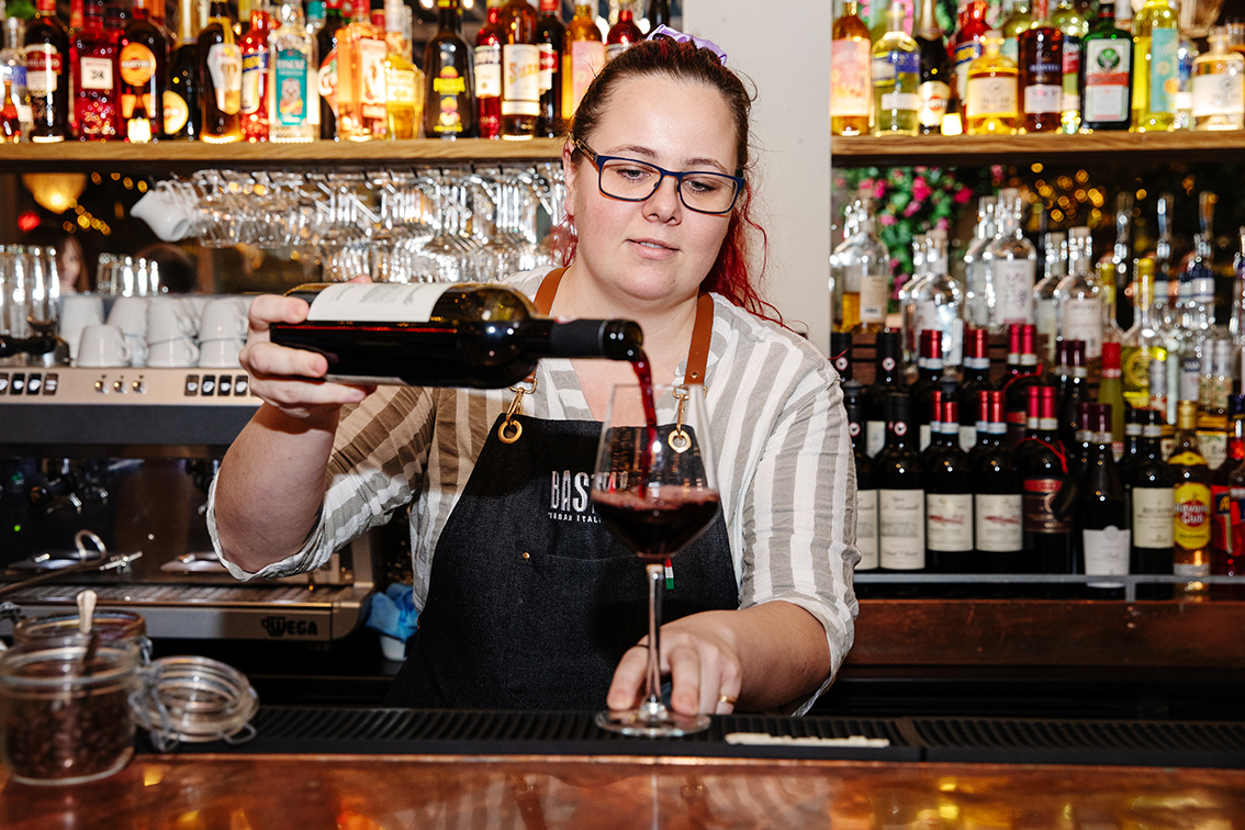 Hon har olika arbetsuppgifter, beroende på dag och personalstyrka. Just ­i dag ska hon stå i baren.