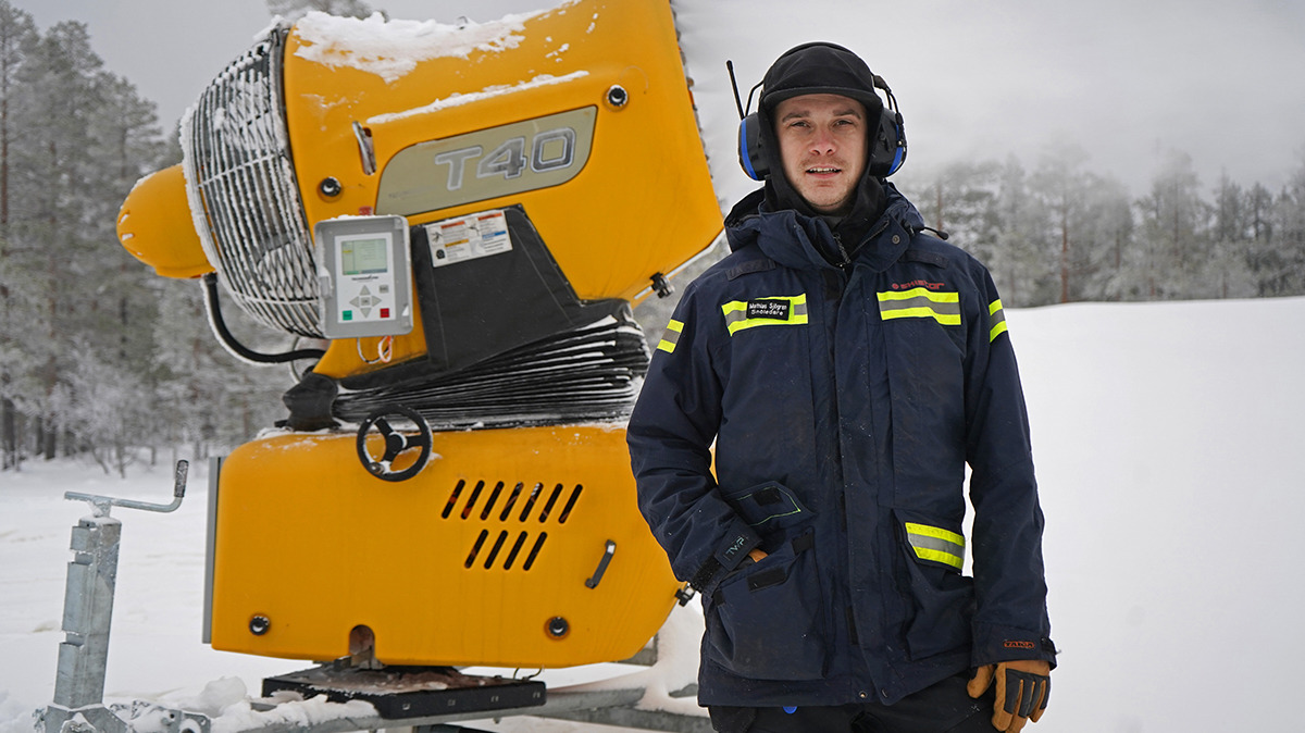 Det är inte så jobbigt att sätta i gång en snökanon, säger Malte.