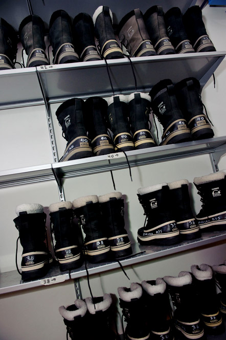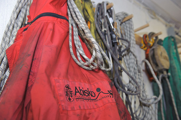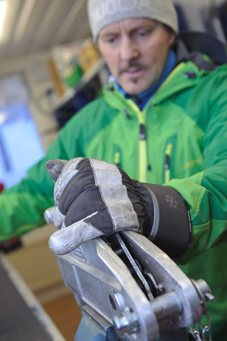 Bosse håller på att förbereda för kvällens körningar av norrskensturister. På väg ut i verkstadsrummet passerar man rader av kraftiga skoteroveraller och rejäla kängor, som gästerna måste ha på sig. Resan till toppen tar runt 20 minuter.