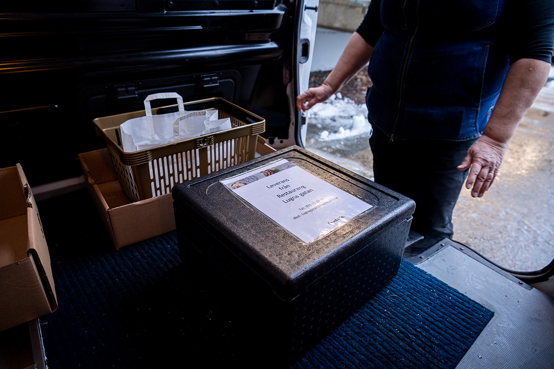 Arbetsstyrkan har minskat från tolv till sex personer. Anne-Marie brukar köra ut catering flera gånger om dagen, nu blir det mer sällan.